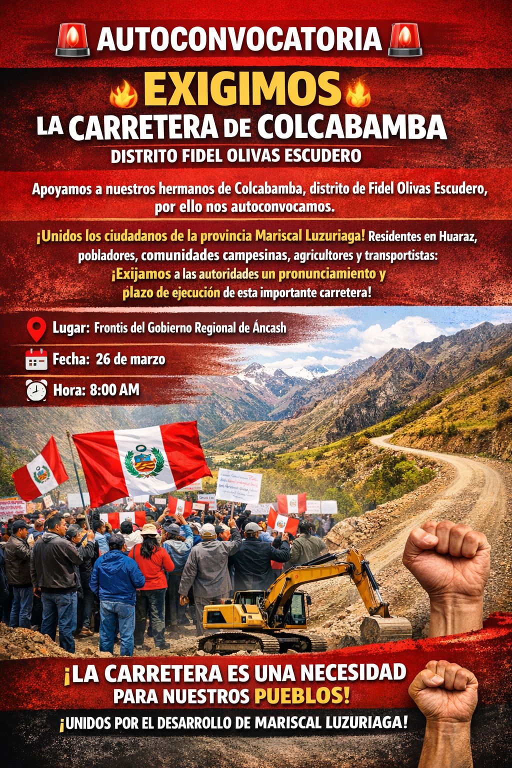 La indignación crece en la Comunidad Campesina “Virgen de los Desamparados” de Colcabamba, donde pobladores y autoridades denuncian lo que califican como una abierta burla del Gobierno Regional de Áncash tras incumplir la ejecución de la carretera Canchiscocha – Colcabamba, pese a reiterados compromisos oficiales.