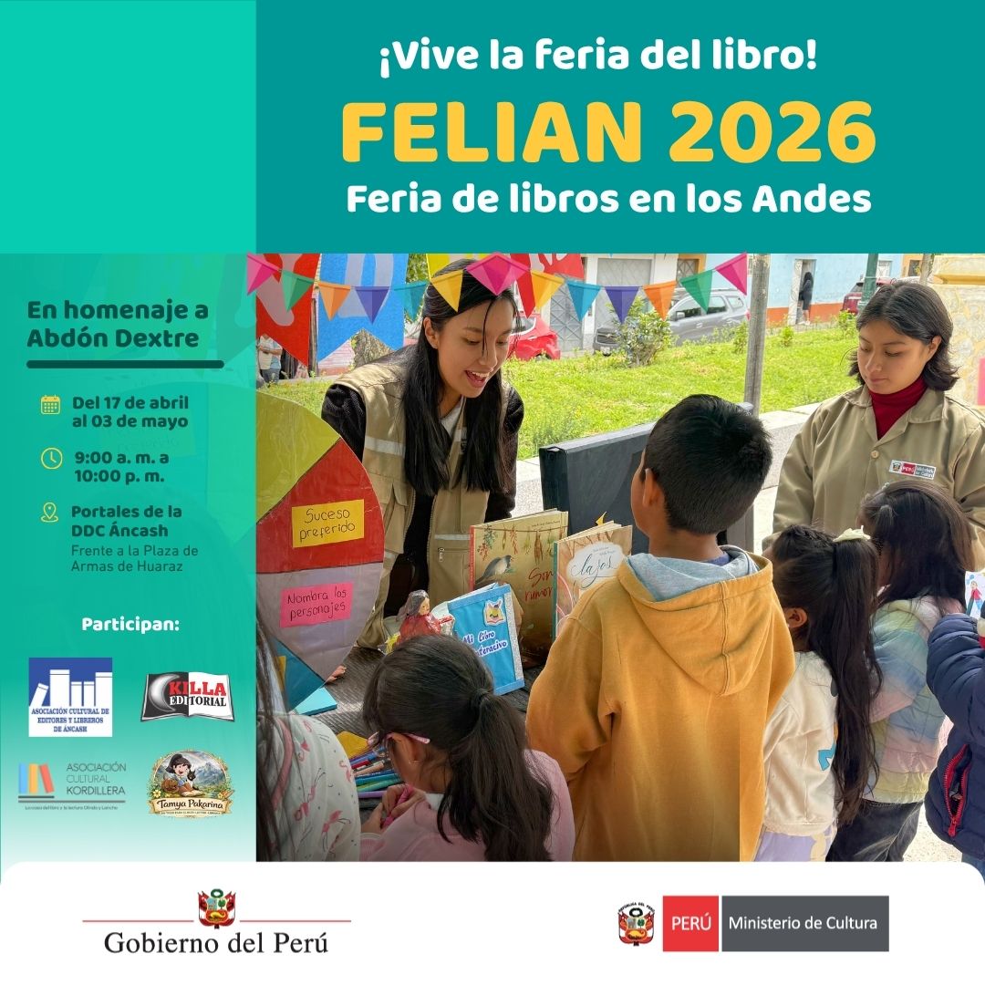 La #DDCÁncash, en coordinación con la Asociación Cultural de Editores y Libreros de Áncash, Asociación Cultural Kordillera, Killa Editorial y Tamya Pakarina, te invita a ser parte de esta gran fiesta del libro y la lectura.