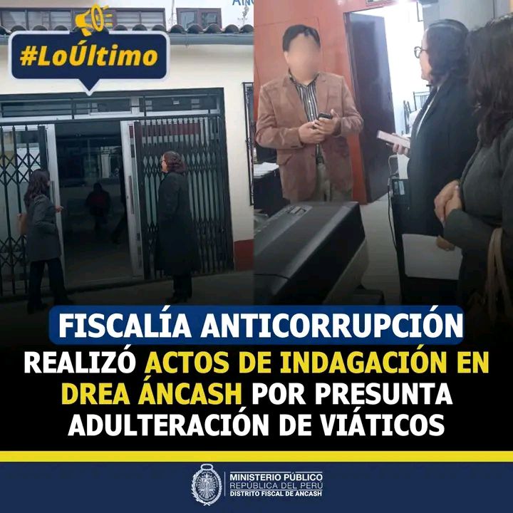 La Fiscalía Anticorrupción de Áncash realizó una intervención de urgencia en la Dirección Regional de Educación de Áncash (DREA), ante denuncias por un presunto manejo irregular en el pago de viáticos.
